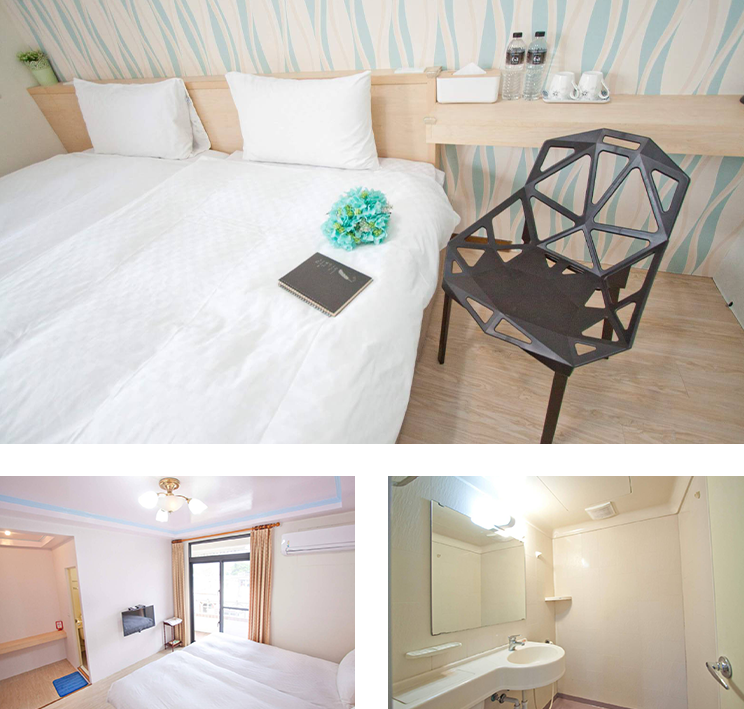 房間素雅,舒適又溫馨,備有雙人房、四人房及六人房不同房型,部份房型備有淋浴設施,滿足不同的住宿需求。
